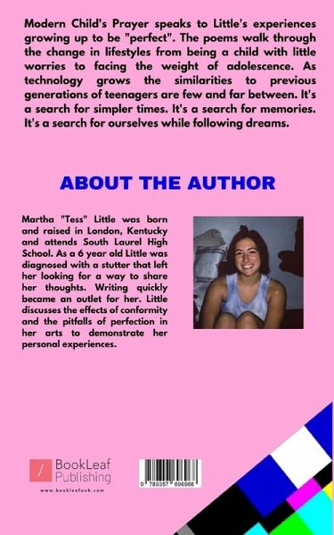Modern Child's Prayer speaks to Little's experiences growing up to be "perfect". The poems walk through the change in lifestyles from being a child with little worries to facing the weight of adolescence. As technology grows the similarities to previous generations of teenagers are few and far between. It's a search for simpler times. It's a search for memories. It's a search for ourselves while following dreams.