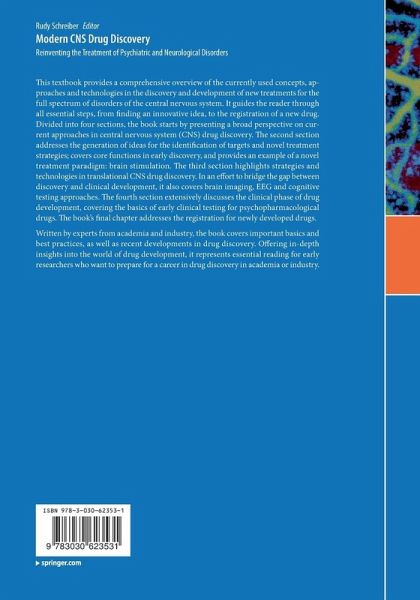Divided into four sections, the book starts by presenting a broad perspective on current approaches in central nervous system (CNS) drug discovery. The second section addresses the generation of ideas for the identification of targets and novel treatment strategies; covers core functions in early discovery, and provides an example of a novel treatment paradigm: brain stimulation. The third section highlights strategies and technologies in translational CNS drug discovery. In an effort to bridge the gap between discovery and clinical development, it also covers brain imaging, EEG and cognitive testing approaches. The fourth section extensively discusses the clinical phase of drug development, covering the basics of early clinical testing for psychopharmacological drugs. The book's final chapter addresses the registration for newly developed drugs.