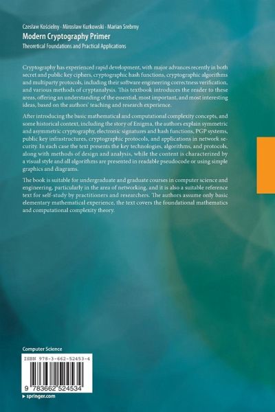After introducing the basic mathematical and computational complexity concepts, and some historical context, including the story of Enigma, the authors explain symmetric and asymmetric cryptography, electronic signatures and hash functions, PGP systems, public key infrastructures, cryptographic protocols, and applications in network security. In each case the text presents the key technologies, algorithms, and protocols, along with methods of design and analysis, while the content is characterized by a visual style and all algorithms are presented in readable pseudocode or using simple graphics and diagrams.