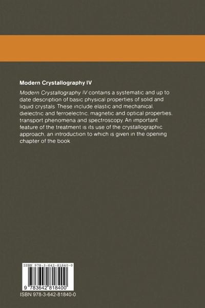 Modern Crystallography IV is devoted to a systematic and up- to-date description of fundamental physical properties of solid and liquid crystals. These include elastic and mechanical, dielectric and ferroelectric, magnetic and optical properties, transport phenomena and spectroscopy. An important feature of the treatment is its use of the crystallographic approach, an introduction to which is given in the opening chapter of the book. The topics are treated at a level understandable to students who have two years of university physics. Researchers and engineers working on practical applications should also find the book useful, as should specialists in other fields who wish to broaden their knowledge of crystallography and materials science. The book is written by a group of leading scientists from the Institute of Crystallography of the USSR Academy of Sciences.
