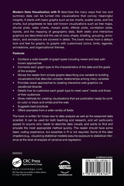 Ways that raw and summary data can be turned into visualizations that convey meaningful insights: basic graphs, bar charts, scatter plots, and line charts, and progresses to tree maps, alluvial plots, radar charts, mosaic plots, grouped dot plots, effects plots, multivariate presentations such as corrgrams, biplots, network diagrams.