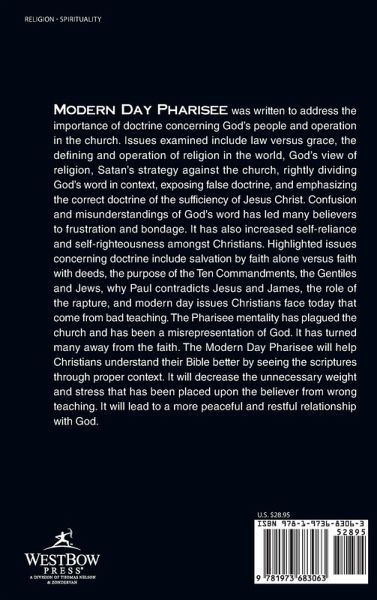 Modern Day Pharisee was written to address the importance of doctrine concerning God's people and operation in the church. Issues examined include law versus grace, the defining and operation of religion in the world, God's view of religion, Satan's strategy against the church, rightly dividing God's word in context, exposing false doctrine, and emphasizing the correct doctrine of the sufficiency of Jesus Christ. Confusion and misunderstandings of God's word has led many believers to frustration and bondage. It has also increased self-reliance and self-righteousness amongst Christians. Highlighted issues concerning doctrine include salvation by faith alone versus faith with deeds, the purpose of the Ten Commandments, the Gentiles and Jews, why Paul contradicts Jesus and James, the role of the rapture, and modern day issues Christians face today that come from bad teaching. The Pharisee mentality has plagued the church and has been a misrepresentation of God. It has turned many away from the faith. The Modern Day Pharisee will help Christians understand their Bible better by seeing the scriptures through proper context. It will decrease the unnecessary weight and stress that has been placed upon the believer from wrong teaching. It will lead to a more peaceful and restful relationship with God.