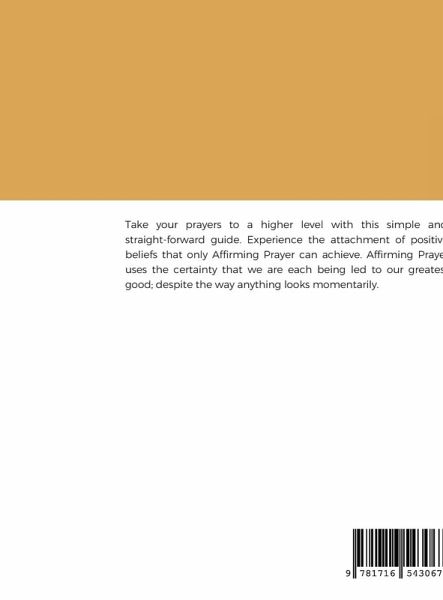 Take your prayers to a higher level with this simple and straight-forward guide. Experience the attachment of positive beliefs that only Affirming Prayer can achieve. Affirming Prayer uses the certainty that we are each being led to our greatest good; despite the way anything looks momentarily.