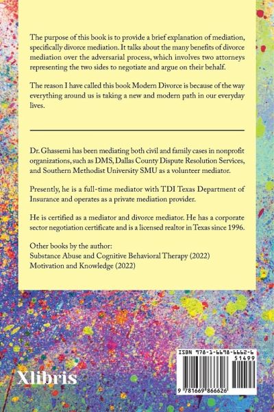 The purpose of this book is to provide a brief explanation of mediation, specifically divorce mediation. It talks about the many benefits of divorce mediation over the adversarial process, which involves two attorneys representing the two sides to negotiate and argue on their behalf. The reason I have called this book Modern Divorce is because of the way everything around us is taking a new and modern path in our everyday lives.