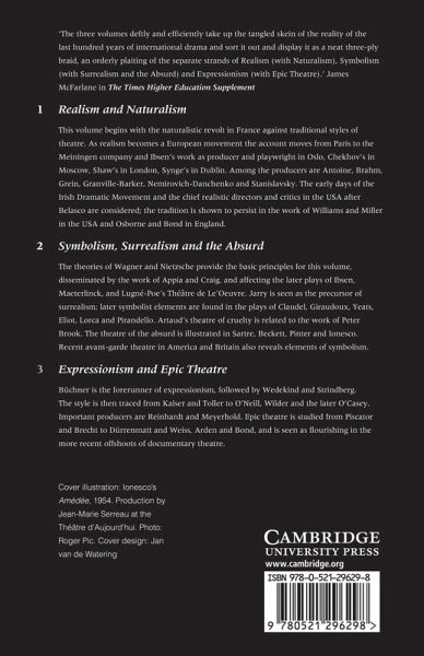 The theories of Wagner and Nietzsche provide the basic principles for this volume, disseminated by the work of Appia and Craig, and affecting the later plays of Ibsen, Maeterlinck, and Lugne-Poe's Theatre de Le'Oeuvre. Jarry is seen as the precursor of surrealism; later symbolist elements are found in the plays of Claudel, Giraudoux, Yeats, Eliot, Lorca and Pirandello. Artaud's theatre of cruelty is related to the work of Peter Brook. The theatre of the absurd is illustrated in Sartre, Beckett, Pinter and Ionesco. Recent avant-garde theatre in America and Britain also reveals elements of symbolism.