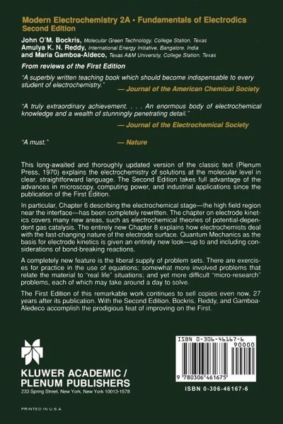 This book had its nucleus in some lectures given by one of us (J. O'M. B. ) in a course on electrochemistry to students of energy conversion at the University of Pennsyl- nia. It was there that he met a number of people trained in chemistry, physics, biology, metallurgy, and materials science, all of whom wanted to know something about electrochemistry. The concept of writing a book about electrochemistry which could be understood by people with very varied backgrounds was thereby engendered. The lectures were recorded and written up by Dr. Klaus Muller as a 293-page manuscript. At a later stage, A. K. N. R. joined the effort; it was decided to make a fresh start and to write a much more comprehensive text. Of methods for direct energy conversion, the electrochemical one is the most advanced and seems the most likely to become of considerable practical importance. Thus, conversion to electrochemically powered transportation systems appears to be an important step by means of which thedifficulties of air pollution and the effects of an increasing concentration in the atmosphere of carbon dioxide may be met. Cor- sion is recognized as having an electrochemical basis. The synthesis of nylon now contains an important electrochemical stage. Some central biological mechanisms have been shown to take place by means of electrochemical reactions. A number of American organizations have recently recommended greatly increased activity in training and research in electrochemistry at universities in the United States.