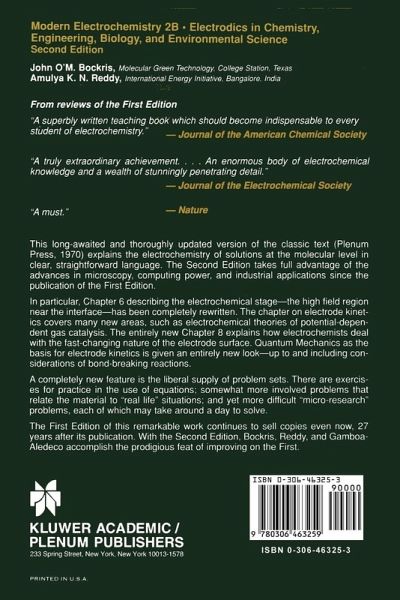 This book had its nucleus in some lectures given by one of us (J. O'M. B. ) in a course on electrochemistry to students of energy conversion at the University of Pennsyl- nia. It was there that he met a number of people trained in chemistry, physics, biology, metallurgy, and materials science, all of whom wanted to know something about electrochemistry. The concept of writing a book about electrochemistry which could be understood by people with very varied backgrounds was thereby engendered. The lectures were recorded and written up by Dr. Klaus Muller as a 293-page manuscript. At a later…mehr
