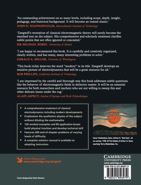 An engaging writing style and a strong focus on the physics make this comprehensive, graduate-level textbook unique among existing classical electromagnetism textbooks. It features close to 120 worked examples, 80 applications boxes and nearly 600 end-of-chapter homework problems, with a solutions manual available to instructors at www.cambridge.org/Zangwill.