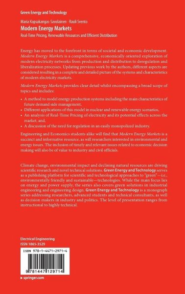 Energy has moved to the forefront in terms of societal and economic development. Modern Energy Markets is a comprehensive, economically oriented, exploration of modern electricity networks from production and distribution to deregulation and liberalization processes. Updating previous work by the authors, different aspects are considered resulting in a complete and detailed picture of the systems and characteristics of modern electricity markets.
