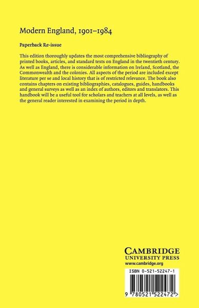 This edition thoroughly updates the most comprehensive bibliography of printed books, articles, and standard texts on England in the twentieth century. As well as England, there is considerable information on Ireland, Scotland, the Commonwealth and the colonies. All aspects of the period are included except literature per se and local history that is of restricted relevance. The book also contains chapters on existing bibliographies, catalogues, guides, handbooks and general surveys as well as an index of authors, editors and translators. This handbook will be a useful tool for scholars and teachers at all levels, as well as the general reader interested in examining the period in depth.