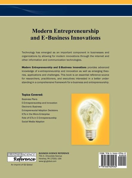 Technology has emerged as an important component in businesses and organizations by allowing for modern innovations through the internet and other information and communication technologies. Modern Entrepreneurship and E-Business Innovations provides advanced knowledge of e-entrepreneurship and innovation as well as emerging theories, applications and challenges. This book is an essential reference source for researchers, practitioners, and executives interested in a better understanding of a comprehensive framework for e-business and entrepreneurship.