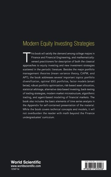 This book will satisfy the demand among college majors in Finance and Financial Engineering, and mathematically-versed practitioners for description of both the classical approaches to equity investing and new investment strategies scattered in the periodic literature. Besides the major portfolio management theories (mean variance theory, CAPM, and APT), the book addresses several important topics: portfolio diversification, optimal ESG portfolios, factor models (smart betas), robust portfolio optimization, risk-based asset allocation, statistical arbitrage, alternative data based investing, back-testing of trading strategies, modern market microstructure, algorithmic trading, and agent-based modeling of financial markets. The book also includes the basic elements of time series analysis in the Appendix for self-contained presentation of the material. While the book covers technical concepts and models, it will not overburden the reader with math beyond the Finance undergraduates' curriculum.