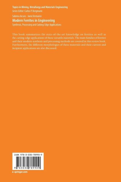 A Brief History of Ferrites.- Structure of Ferrites.- Magnetic, Electrical and Optical Properties of Ferrites.- Chemical and Mechanical Properties of Ferrites.- Synthesis.- Processing.- Current and Incipient Applications