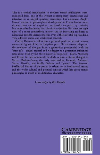 This is a critical introduction to modern French philosophy, commissioned from one of the liveliest contemporary practitioners and intended for an English-speaking readership. Vincent Descombes offers here a personal guide to the main movements and figures of the last forty-five years.