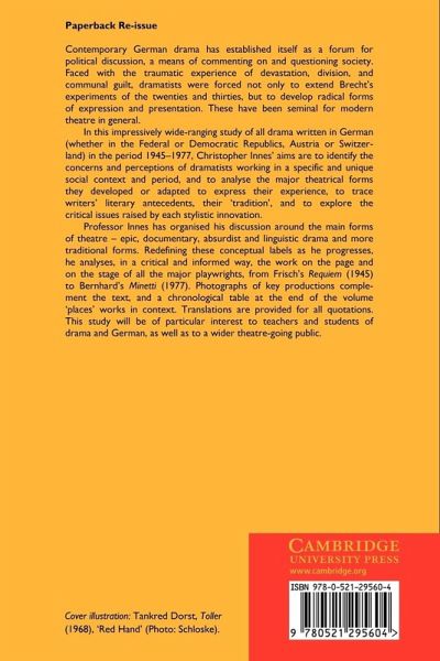Christopher Innes examines the concerns and perceptions of dramatists writing in German between 1945 and 1977 to analyse the theatrical forms they developed or adapted.