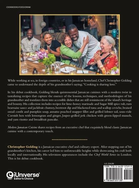 While working at sea, in foreign countries, or in his Jamaican homeland, Chef Christopher Golding came to understand the depth of his grandmother's saying, "Cooking is sharing love." In a debut cookbook, Golding blends quintessential Jamaican cuisines with a modern twist in tantalizing recipes that capture the essence of the lessons, techniques, and methodologies of his grandmother and translate them into accessible dishes that are still reminiscent of the island's heritage and bounty. His collection includes recipes for lime-honey marinade and Sugar Mill spice rub, rum bearnaise sauce and jackfruit chutney, beetroot dip and blackened tuna and scallop ceviche, braised oxtail confit and pumpkin soup, annatto poached snapper fillet and grilled lobster tail, sous-vide Cornish hen with lemongrass and ginger, Josper-grilled jerk chicken with green-lipped mussels, and yam risotto and breadfruit pancake. Modern Jamaican Cuisine shares recipes from an executive chef that exquisitely blend classic Jamaican cuisine with a contemporary touch.