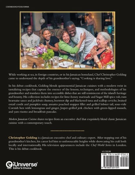 While working at sea, in foreign countries, or in his Jamaican homeland, Chef Christopher Golding came to understand the depth of his grandmother's saying, "Cooking is sharing love." In a debut cookbook, Golding blends quintessential Jamaican cuisines with a modern twist in tantalizing recipes that capture the essence of the lessons, techniques, and methodologies of his grandmother and translate them into accessible dishes that are still reminiscent of the island's heritage and bounty. His collection includes recipes for lime-honey marinade and Sugar Mill spice rub, rum bearnaise sauce and jackfruit chutney, beetroot dip and blackened tuna and scallop ceviche, braised oxtail confit and pumpkin soup, annatto poached snapper fillet and grilled lobster tail, sous-vide Cornish hen with lemongrass and ginger, Josper-grilled jerk chicken with green-lipped mussels, and yam risotto and breadfruit pancake. Modern Jamaican Cuisine shares recipes from an executive chef that exquisitely blend classic Jamaican cuisine with a contemporary touch.