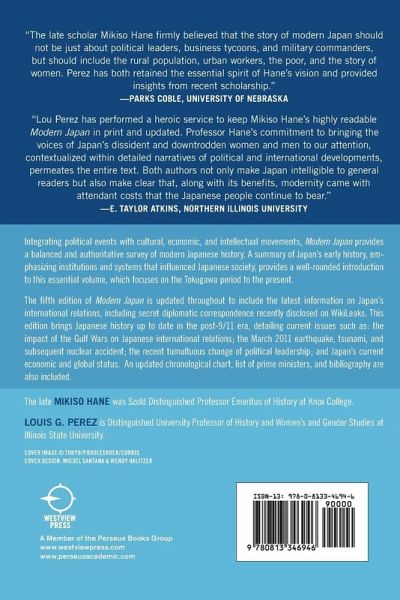 Integrating political events with cultural, economic, and intellectual movements, Modern Japan provides a balanced and authoritative survey of modern Japanese history. A summary of Japan's early history, emphasizing institutions and systems that influenced Japanese society, provides a well-rounded introduction to this essential volume, which focuses on the Tokugawa period to the present. The fifth edition of Modern Japan is updated throughout to include the latest information on Japan's international relations, including secret diplomatic correspondence recently disclosed on WikiLeaks. This edition brings Japanese history up to date in the post 9/11 era, detailing current issues such as: the impact of the Gulf Wars on Japanese international relations, the March 2011 earthquake, tsunami, and subsequent nuclear accident, the recent tumultuous change of political leadership, and Japan's current economic and global status. An updated chronological chart, list of prime ministers, and bibliography are also included.