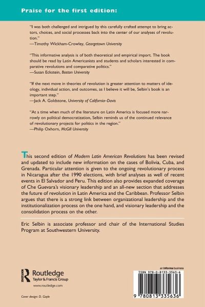 In contrast to previous studies that have centered on the institutionalization of revolution in Latin America and the Caribbean, Modern Latin American Revolutions, Second Edition, introduces the concept of consolidation of the revolutionary process?the efforts of revolutionary leaders to transform society and the acceptance by a significant majority of the population of the core of the social revolutionary project. As a result, the spotlight is on people, not structures, and transformation, not simply revolutionary transition.The second edition of this acclaimed book has been revised to include new information on the cases of Bolivia, Cuba, Nicaragua, and Grenada, assessing the extent to which each revolution was both institutionalized and consolidated. This edition also boasts expanded coverage on Ch uevara's visionary leadership and an all-new section that addresses the future of revolution in Latin America and the Caribbean. Dr. Selbin argues that there is a strong link between organizational leadership and the institutionalization process on the one hand, and visionary leadership and the consolidation process on the other. Particular attention is given to the ongoing revolutionary process in Nicaragua, with an emphasis on the implications and ramifications of the 1990 electoral process. A final chapter includes brief analyses of the still unfolding revolutionary processes in El Salvador and Peru.
