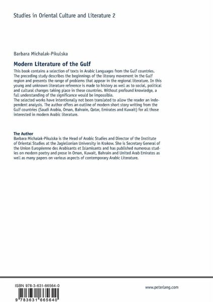The preceding study describes the beginnings of the literary movement in the Gulf region and presents the range of problems that appear in the regional literature. In this young and unknown literature reference is made to history as well as to social, political and cultural changes taking place in these countries. Without profound knowledge, a full understanding of the significance would be impossible.