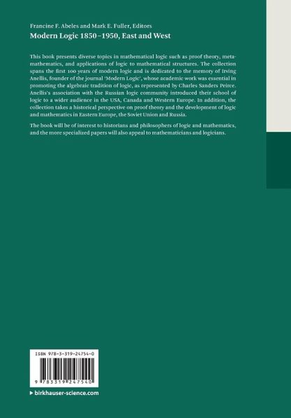 This book presents diverse topics in mathematical logic such as proof theory, meta-mathematics, and applications of logic to mathematical structures. The collection spans the first 100 years of modern logic and is dedicated to the memory of Irving Anellis, founder of the journal 'Modern Logic', whose academic work was essential in promoting the algebraic tradition of logic, as represented by Charles Sanders Peirce. Anellis's association with the Russian logic community introduced their school of logic to a wider audience in the USA, Canada and Western Europe. In addition, the collection takes a historical perspective on proof theory and the development of logic and mathematics in Eastern Logic, the Soviet Union and Russia.