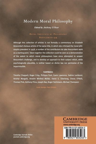 Although this collection of articles is not formally a commentary on Elizabeth Anscombe's famous article of the same title, in which she criticized the moral philosophy prevalent in 1958, a number of the contributors consider Anscombe's work as a starting point. The collection can be interpreted as a demonstration of the extent to which moral philosophers have since attempted to respond to Anscombe's challenge, and to develop an approach to their subject which is neither based on divine law nor permissive of the impermissible.