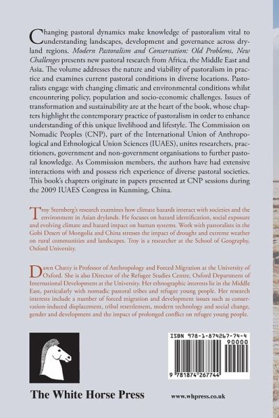 TRADITION AND TRANSITION IN PASTORAL SOCIETIES Changing pastoral dynamics make knowledge of pastoralism vital to understanding landscapes, development and governance across dryland regions. Modern Pastoralism and Conservation: Old Problems, New Challenges presents new pastoral research from Africa, the Middle East and Asia. The volume (previously published in China) addresses the nature and viability of pastoralism in practice and examines current pastoral conditions in diverse locations. Pastoralists engage with changing climatic and environmental conditions whilst encountering policy, population and socio-economic challenges. Issues of transformation and sustainability are at the heart of the book, whose chapters highlight the contemporary practice of pastoralism in order to enhance understanding of this unique livelihood and lifestyle. The Commission on Nomadic Peoples (CNP), part of the International Union of Anthropological and Ethnological Union Sciences (IUAES), unites researchers, practitioners, government and non-government organisations to further pastoral knowledge. As Commission members, the authors have had extensive interactions with and possess rich experience of diverse pastoral societies. This book's chapters originate in papers presented at CNP sessions during the 2009 IUAES Congress in Kunming, China. Two perspectives were stressed: pastoralism in an international context and in the host nation, China. This approach identified both the impact of rapid development on nomadic practices and livelihoods in China and the country's growing integration into the global pastoral research community. Modern Pastoralism and Conservation: Old Problems, New Challenges builds an international perspective on the wide- ranging approaches and challenges to traditional pastoralism in the twenty-first century.