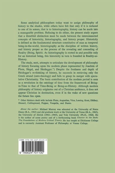 I. Philosophy and History: An Introduction.- II. Heidegger: The Question of Being and Time.- Section 1. Historicity.- Section 2. Historiography.- Section 3. History as Metaphysics: Hegel.- III. Hegel: Consummation of Christian Philosophy History / Culminatio? of Modern Philosophy of History.- Section 1. The Significance of Hegel's Phenomenology of Spirit.- Section 2. From Being-in-Time to Time-Being.- Section 3. Onto-theology of History and the Death of God.- IV. Joachim of Flora: Culmination of Christian Philosophy of History / Origination of Modern Philosophy of History.- Section 1. The Transition from Hegel to Joachim: Lessing.- Section 2. Joachim of Flora: His Twofold Significance.- Section 3. Augustinian Thought and the Origin of Modern Philosophy of History.- Epilog.