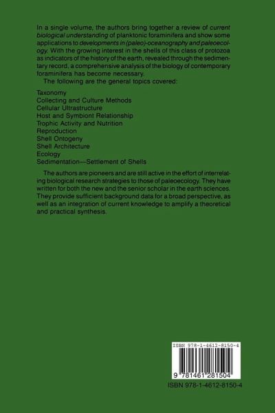 In a single volume, the authors bring together a review of current biological understanding of planktonic foraminifera and apply it to developments in sedimentology. With the growing interest in the shells of this class of protozoa as indicators of the history of the earth, revealed through the sedimentary record, a comprehensive analysis of the biology of contemporary foraminifera has become necessary. Main topics covered include Taxonomy, Collecting and Culture Methods, Cellular Ultrastructure, Host and Symbiont Relationships, Trophic Activity and Nutrition, Reproduction, Shell Ontogeny and Architecture, Ecology and Sedimentation and Settlement of Shells.