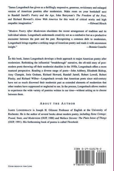 Robert Lowell and many who followed in his personal, reflective style, such as John Berryman, W.S. Merwin and Adrienne Rich, have been seen as breaking with the influence of T.S. Eliot and the New Critics. But as Jim Longenbach notes in his new book, this "breakthrough" narrative no longer makes good sense, due to our changing conceptions of what constitutes modernism and its New Critical values, and the now-ubiquitous use of the term "post-modern". Longenbach's new book offers a wide-ranging account of the past 40 years of American poetry and allows for fuller appreciation of women poets.