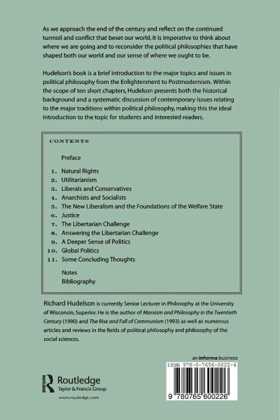 An introduction to the topics and issues in political philosophy, from the Enlightenment to Postmodernism. The author presents both the historical background of, and a systematic discussion of contemporary issues relating to the major traditions within political philosophy.