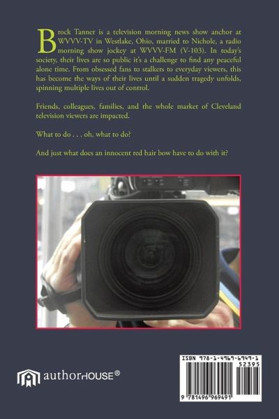 Brock Tanner is a television morning news show anchor at WVVV-TV in Westlake, Ohio, married to Nichole, a radio morning show jockey at WVVV-FM (V-103). In today's society, their lives are so public it's a challenge to find any peaceful alone time. From obsessed fans to stalkers to everyday viewers, this has become the ways of their lives until a sudden tragedy unfolds, spinning multiple lives out of control. Friends, colleagues, families, and the whole market of Cleveland television viewers are impacted. What to do . . . oh, what to do? And just what does an innocent red hair bow have to do with it?