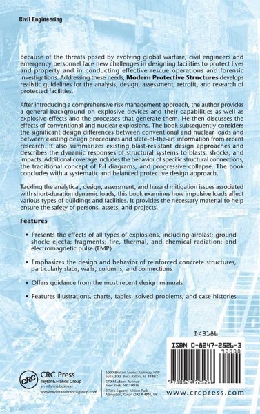 In today's world, reasonably predictable military operations have been replaced by low intensity conflicts-less predictable terrorist activities carried out by determined individuals or small groups that possess a wide range of backgrounds and capabilities. Because of the threats posed by this evolving type of warfare, civil engineers and emergency personnel face new challenges in designing facilities to protect lives and property and in conducting effective rescue operations and forensic investigations. Addressing these needs, Modern Protective Structures develops realistic guidelines for the analysis, design, assessment, retrofit, and research of protected facilities. After introducing a comprehensive risk management approach, the author provides a general background on explosive devices and their capabilities as well as explosive effects and the processes that generate them. He then discusses the effects of conventional and nuclear explosions. The book subsequently considers the significant design differences between conventional and nuclear loads and between existing design procedures and state-of-the-art information from recent research. It also summarizes existing blast-resistant design approaches and describes the dynamic responses of structural systems to blasts, shocks, and impacts. Additional coverage includes the behavior of specific structural connections, the traditional concept of P-I diagrams, and progressive collapse. The book concludes with a systematic and balanced protective design approach. Tackling the analytical, design, assessment, and hazard mitigation issues associated with short-duration dynamic loads, this book examines how impulsive loads affect various types of buildings and facilities. It provides the necessary material to help ensure the safety of persons, assets, and projects.