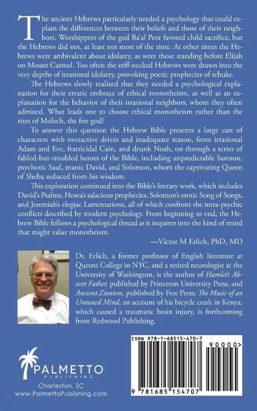 The ancient Hebrews particularly needed a psychology that could explain the differences between their beliefs and those of their neighbors. Worshippers of the god Ba'al Peor favored child sacrifice, but the Hebrews did not, at least not most of the time. At other times the Hebrews were ambivalent about idolatry, as were those standing before Elijah on Mount Carmel. Too often the stiff-necked Hebrews were drawn into the very depths of irrational idolatry, provoking poetic prophecies of ex rebuke. The Hebrews slowly realized that they needed a psychological explanation for their erratic embrace of ethical monotheism, as well as an explanation for the behavior of their irrational neighbors, whom they often admired. What leads one to choose ethical monotheism rather than the rites of Molech, the fire god? To answer this question the Hebrew Bible presents a large cast of characters with overactive drives and inadequate reason, from irrational Adam and Eve, fratricidal Cain, and drunk Noah, on through a series of fabled-but-troubled heroes of the Bible, including unpredictable Samson, psychotic Saul, manic David, and Solomon, whom the captivating Queen of Sheba seduced from his wisdom. This exploration continued into the Bible's literary work, which includes David's Psalms, Hosea's salacious prophecies, Solomon's erotic Song of Songs, and Jeremiah's elegiac Lamentations, all of which confront the intra-psychic conflicts described by modern psychology. From beginning to end, the Hebrew Bible follows a psychological thread as it inquires into the kind of mind that might value monotheism.