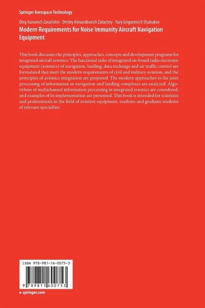 This book presents a technical solution to ensuring the noise immunity of navigation systems in civil aviation aircrafts at the stages of their terminal procedures. It highlights instrumental precision approaches to landing and landing in automatic mode using satellite and inertial radio navigation systems and ground-based augmentation used as the primary means, in accordance with the ICAO requirements. The book is intended for engineering and technical specialists engaged in the development, manufacture and operation of on-board radio electronic systems of aircrafts and ground-based radio engineering support for flights, as well as graduate students and senior students of radio engineering specialties. It is also useful for professionals whose activities are related to air traffic control.
