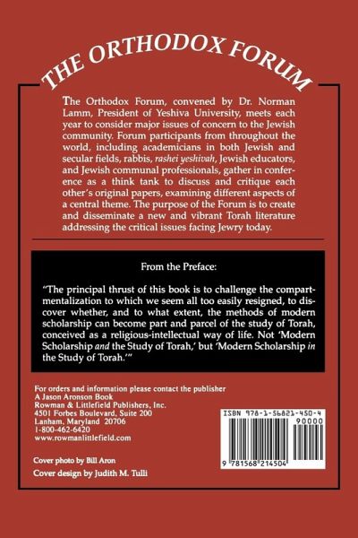 "The principal thrust of this book is to challenge the compartmentalization to which we seem all too easily resigned, to discover whether, and to what extent, the methods of modern scholarship can become part and parcel of the study of Torah, conceived as a religious-intellectual way of life. Not 'Modern Scholarship and the Study of Torah,' but 'Modern Scholarship in the Study of Torah."