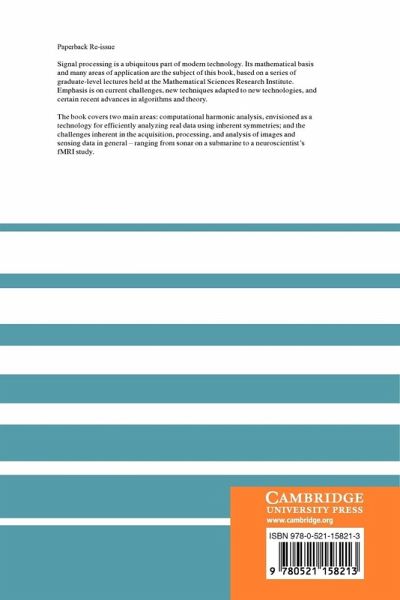Signal processing is everywhere in modern technology. Its mathematical basis and many areas of application are the subject of this book, based on a series of graduate-level lectures held at the Mathematical Sciences Research Institute. Emphasis is on challenges in the subject, particular techniques adapted to particular technologies, and certain advances in algorithms and theory. The book covers two main areas: computational harmonic analysis, envisioned as a technology for efficiently analysing real data using inherent symmetries; and the challenges inherent in the acquisition, processing and analysis of images and sensing data in general [EMDASH] ranging from sonar on a submarine to a neuroscientist's fMRI study.