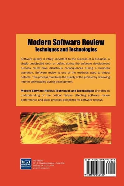 Software quality is vitally important to the success of a business. A single undetected error or defect during the software development process could have disastrous consequences during a business operation. Software review is one of the methods used to detect defects. This process maintains the quality of the product by reviewing interim deliverables during development. Modern Software Review: Techniques and Technologies provides an understanding of the critical factors affecting software review performance and gives practical guidelines for software reviews.