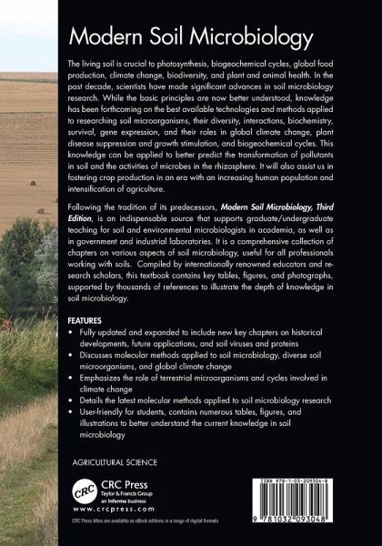 Following the tradition of its predecessors, Modern Soil Microbiology, Third Edition, isan indispensable source that supports graduate/undergraduate teaching for soil and environmental microbiologists in academia, as well as in government and industrial laboratories. It is a comprehensive collection of chapters on various aspects of soil microbiology, useful for all professionals working with soils. Compiled by internationally renowned educators and research scholars, this textbook contains key tables, figures, and photographs, supported by thousands of references to illustrate the depth of knowledge in soil microbiology.