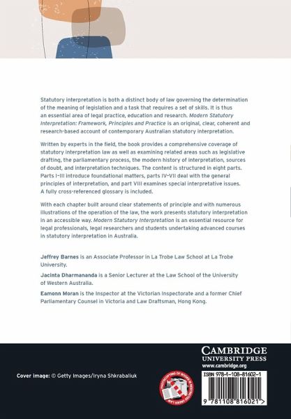 Modern Statutory Interpretation is an original, clear, coherent and research-based account of contemporary Australian statutory interpretation. It provides a comprehensive coverage of statutory interpretation law, legislative drafting, the parliamentary process, the modern history of interpretation, sources of doubt, and interpretation techniques.