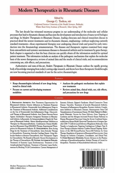 Authoritative and state-of-the-art, Modern Therapeutics in Rheumatic Diseases outlines the rapidly growing body of knowledge emerging from today's cutting-edge research, and shows how these therapeutic breakthroughs are now becoming practical standards of care for the active rheumatologist.