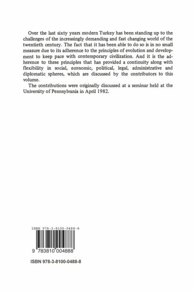 Presented in this volume are essays and surveys examining elements of continuity within the context of the broad changes that have marked the history of modern Turkey. The establishment of the Turkish Republic in 1923 represented a fresh start after the demise of the Ottoman Empire that had spanned the medieval and the modern times, but had become too outdated to cope with the complexities of the industrialized world. Although the Republic was meant to shed the burden of the past in order to meet the challenges of the contemporary era as a modern nation-state, it nevertheless inherited a great deal from the rich civilization of the Ottoman period. Over the last sixty years modern Turkey has been standing up to the challenges of the increasingly demanding and fast changing world of the twentieth century. The fact that it has been able to do so is in no small measure due to its adherence to the principles of evolution and development to keep pace with contemporary civilization. Andit is the adherence to these principles that have provided a continuity along with flexibility in social, economic, political, legal, administrative and diplomatie spheres, which are discussed by the contributors to this volume.
