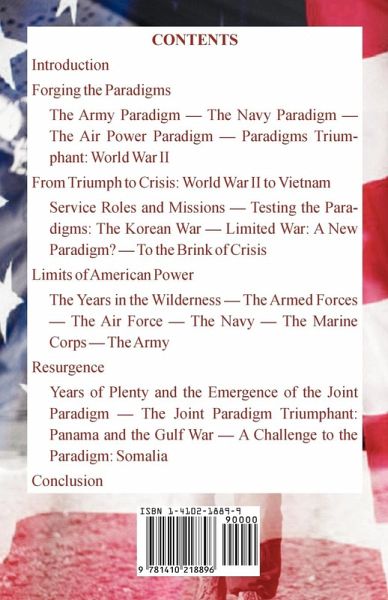 CONTENTS: Introduction Forging the Paradigms The Army Paradigm The Navy Paradigm The Air Power Paradigm Paradigms Triumphant: World War II From Triumph to Crisis: World War II to Vietnam Service Roles and Missions Testing the Paradigms: The Korean War Limited War: A New Paradigm? To the Brink of Crisis Limits of American Power The Years in the Wilderness The Armed Forces The Air Force The Navy The Marine Corps The Army Resurgence Years of Plenty and the Emergence of the Joint Paradigm The Joint Paradigm Triumphant: Panama and the Gulf War A Challenge to the Paradigm: Somalia Conclusion About the Author
