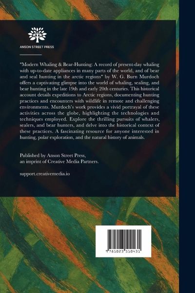 "Modern Whaling & Bear-Hunting: A record of present-day whaling with up-to-date appliances in many parts of the world, and of bear and seal hunting in the arctic regions" by W. G. Burn Murdoch offers a captivating glimpse into the world of whaling, sealing, and bear hunting in the late 19th and early 20th centuries. This historical account details expeditions to Arctic regions, documenting hunting practices and encounters with wildlife in remote and challenging environments. Murdoch's work provides a vivid portrayal of these activities across the globe, highlighting the technologies and techniques employed. Explore the thrilling pursuits of whalers, sealers, and bear hunters, and delve into the historical context of these practices. A fascinating resource for anyone interested in hunting, polar exploration, and the natural history of animals. This work has been selected by scholars as being culturally important, and is part of the knowledge base of civilization as we know it. This work is in the public domain in the United States of America, and possibly other nations. Within the United States, you may freely copy and distribute this work, as no entity (individual or corporate) has a copyright on the body of the work. Scholars believe, and we concur, that this work is important enough to be preserved, reproduced, and made generally available to the public. We appreciate your support of the preservation process, and thank you for being an important part of keeping this knowledge alive and relevant.