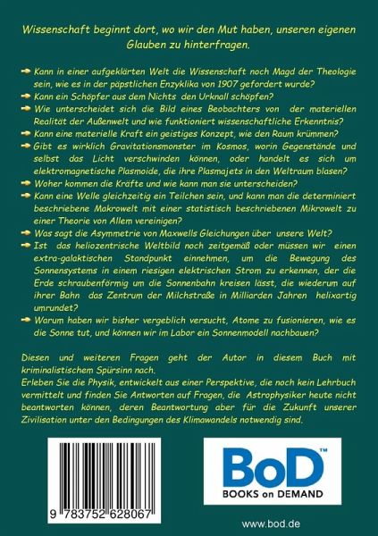 Das Buch entwickelt ausgehend von der Philosophie ein neues Verständnis der Energiebasis der physikalischen Welt und zeigt die logischen Widersprüche der Urknalltheorie auf. Es wird das Verhältnis von Beobachter und Beobachtungsgegenstand im Dialog mit der Natur diskutiert und die theoretischen Ideen hinter der Mathematik der physikalischen Theorien aus der ersten Hälfte des 20. Jahrhunderts erklärt, die zur Urknallhypothese des Priesters Lemaître geführt haben.Diese Arbeitshypothese wurde durch die praktischen Ergebnisse der Raumfahrt schon in der zweiten Hälfte des 20. Jahrhunderts…mehr