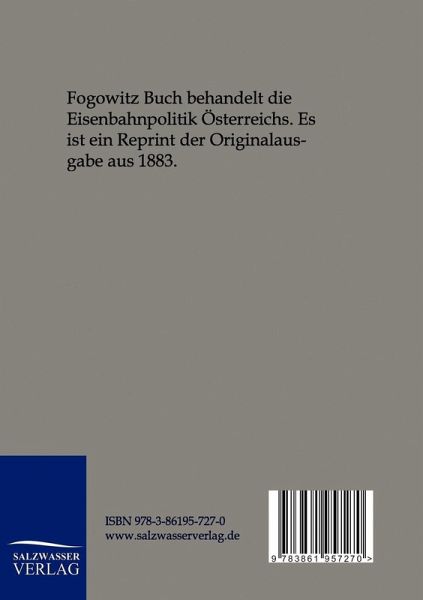 Fogowitz Buch behandelt die Eisenbahnpolitik Österreichs. Es ist ein Reprint der Originalausgabe aus 1883.