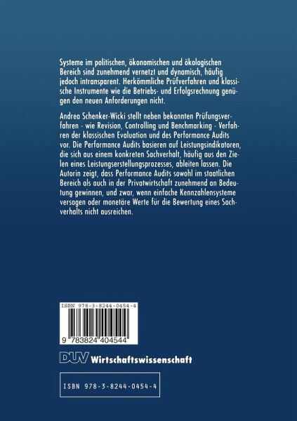Systeme im politischen, ökonomischen und ökologischen Bereich sind zunehmend vernetzt und dynamisch, häufig jedoch intransparent. Herkömmliche Prüfverfahren und klassische Instrumente wie die Betriebs- und Erfolgsrechnung genügen den neuen Anforderungen nicht. Andrea Schenker-Wicki stellt neben bekannten Prüfungsverfahren - wie Revision, Controlling und Benchmarking - Verfahren der klassischen Evaluation und des Performance Audits vor. Die Performance Audits basieren auf Leistungsindikatoren, die sich aus einem konkreten Sachverhalt, häufig aus den Zielen eines Leistungserstellungsprozesses, ableiten lassen. Die Autorin zeigt, dass Performance Audits sowohl im staatlichen Bereich als auch in der Privatwirtschaft zunehmend an Bedeutung gewinnen, und zwar, wenn einfache Kennzahlensysteme versagen oder monetäre Werte für die Bewertung eines Sachverhalts nicht ausreichen.