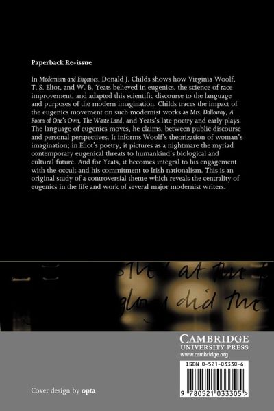 In Modernism and Eugenics, Donald Childs shows how Virginia Woolf, T. S. Eliot and W. B. Yeats believed in eugenics, the science of race improvement and adapted this scientific discourse to the language and purposes of the modern imagination. Childs traces the impact of the eugenics movement on such modernist works as Mrs Dalloway, A Room of One's Own, The Waste Land and Yeats's late poetry and early plays. The language of eugenics moves, he claims, between public discourse and personal perspectives. It informs Woolf's theorization of woman's imagination; in Eliot's poetry, it pictures as a nightmare the myriad contemporary eugenical threats to humankind's biological and cultural future. And for Yeats, it becomes integral to his engagement with the occult and his commitment to Irish Nationalism. This is an interesting study of a controversial theme which reveals the centrality of eugenics in the life and work of several major modernist writers.