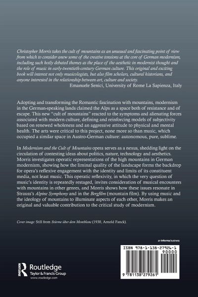 'Christopher Morris takes the cult of mountains as an unusual and fascinating point of view from which to consider anew some of the creative tensions at the core of German modernism, including such hotly debated themes as the place of the aesthetic in modernist thought and the role of music in early-twentieth-century German culture. This original and exciting book will interest not only musicologists, but also film scholars, cultural historians, and anyone interested in the relationship between art, culture and society.' Emanuele Senici, University of Rome La Sapienza, Italy 'With Modernism and the cult of mountains, Christopher Morris provides a most interesting contribution both to the lively field of opera studies and to the investigation of German modernism.' Die Theaterforschung