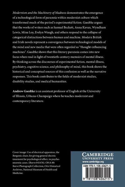 Modernism and the Machinery of Madness presents the collapse of categorical distinctions between human and machine in modern fiction and memoirs of mental illness. These works respond to nascent fields of neurology and psychiatry that equated the mind with the brain, reducing mentally patients to 'dysfunctioning neurological machinery'.